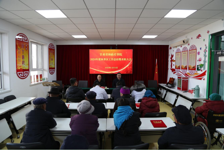 1月22日上午,省和政疗养院召开2024年度休养区工作总结暨表彰会。院党总支书记、院长王冠华出席会议并讲话,党总支委员、副院长李长才主持会议,各科室负责人、麻防科工作人员和全体休养员参加会议。