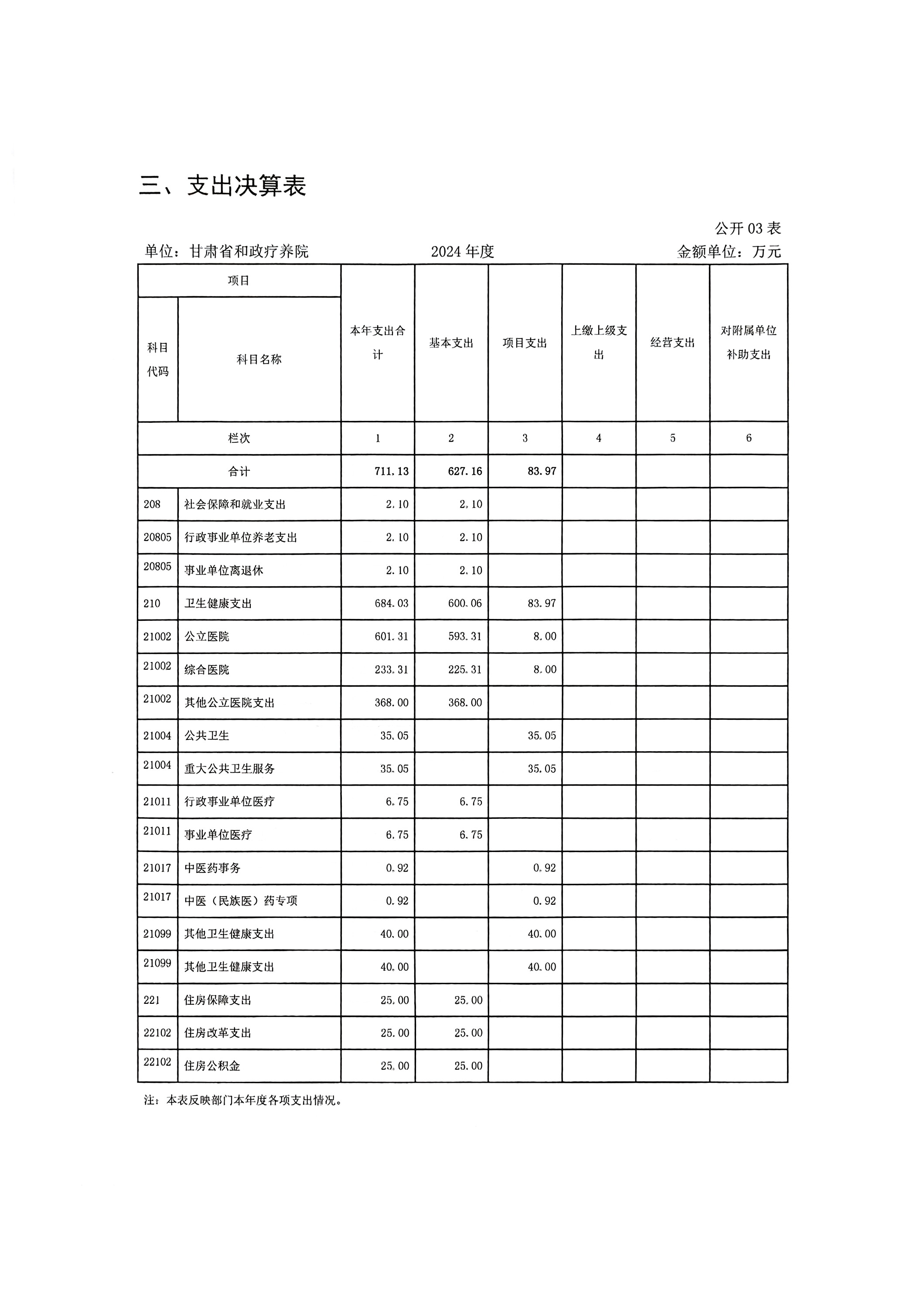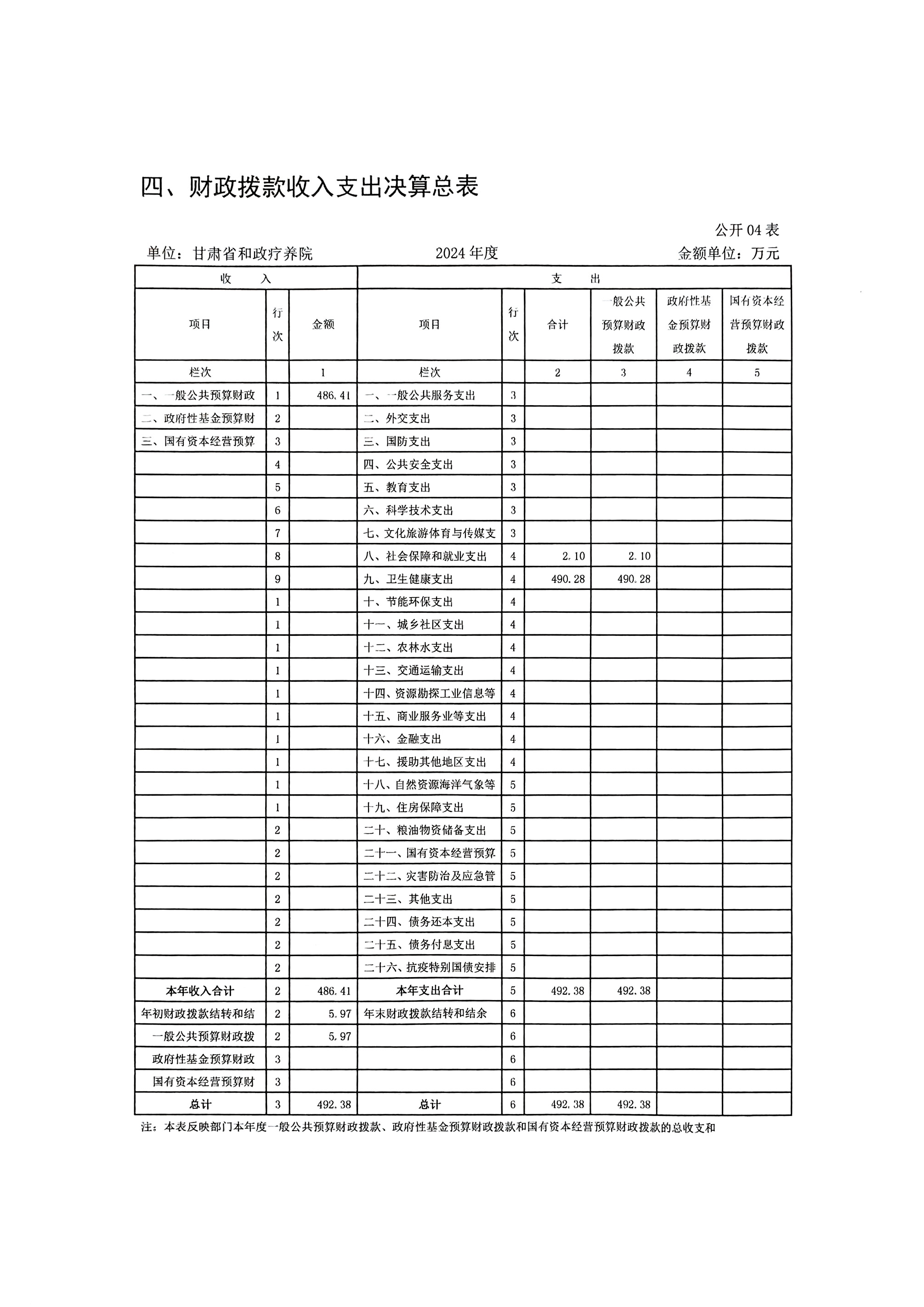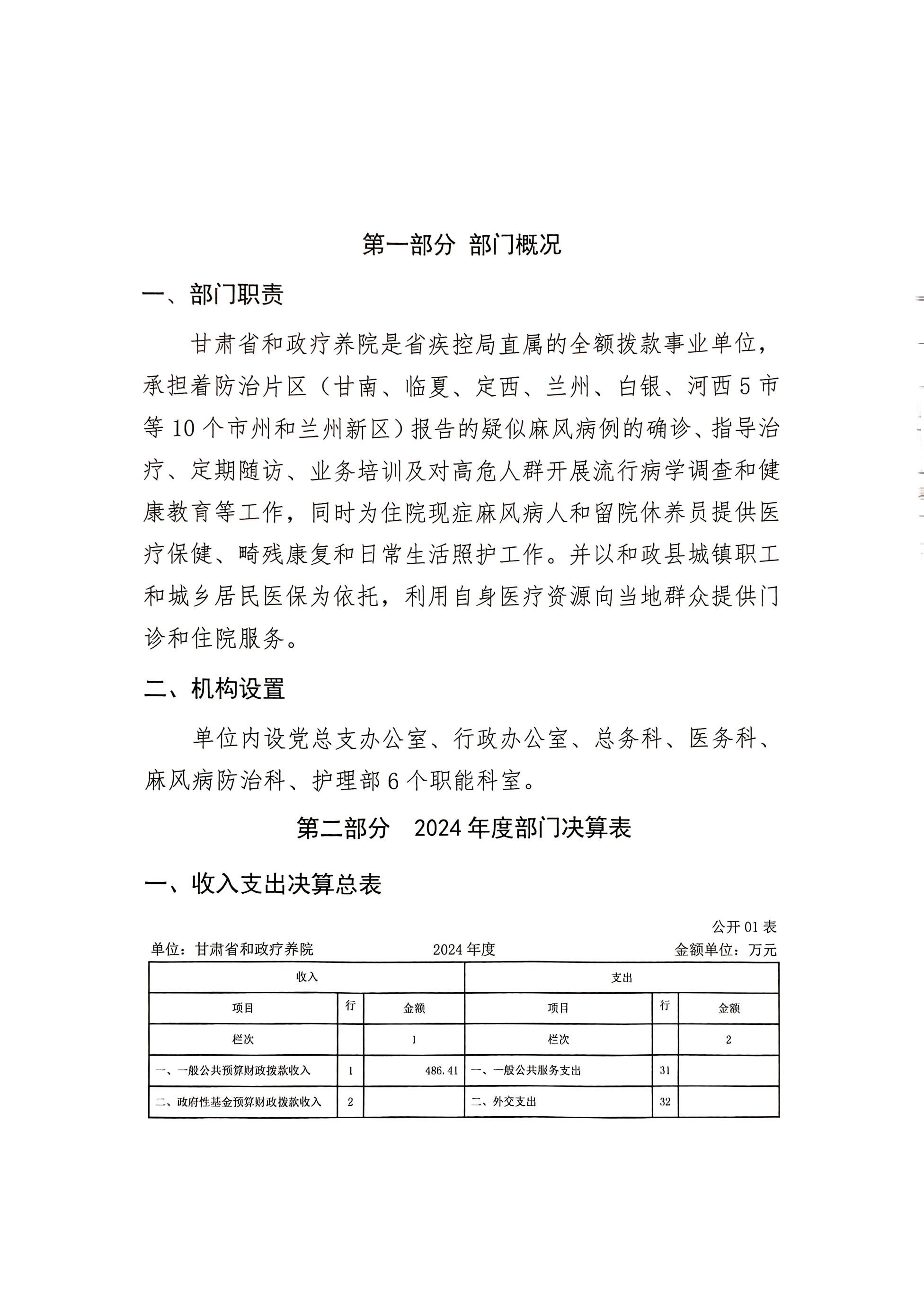 2024年度甘肃省和政疗养院部门决算公开