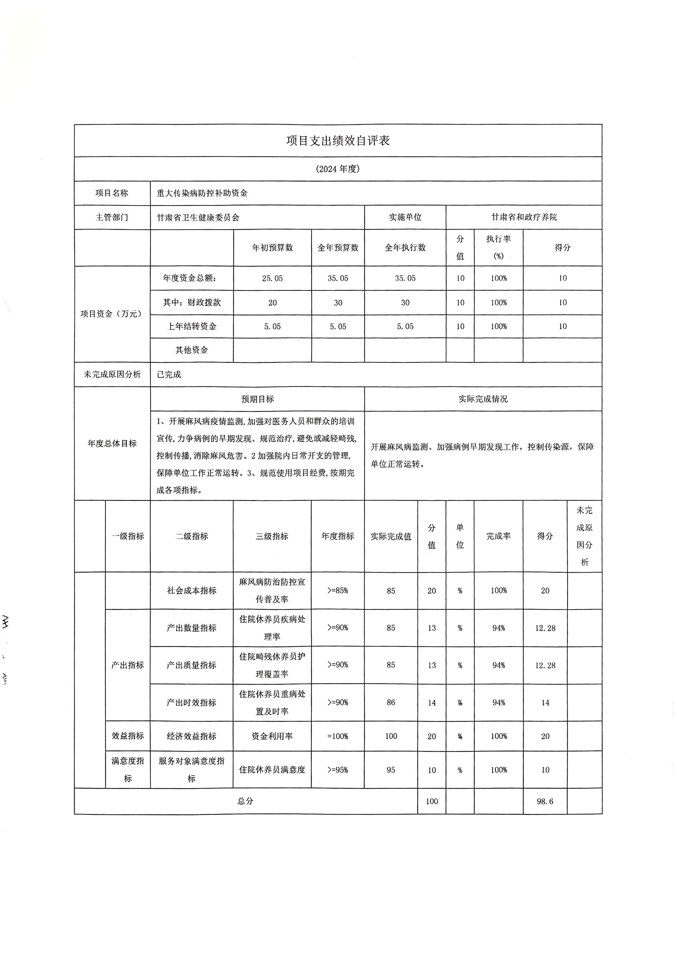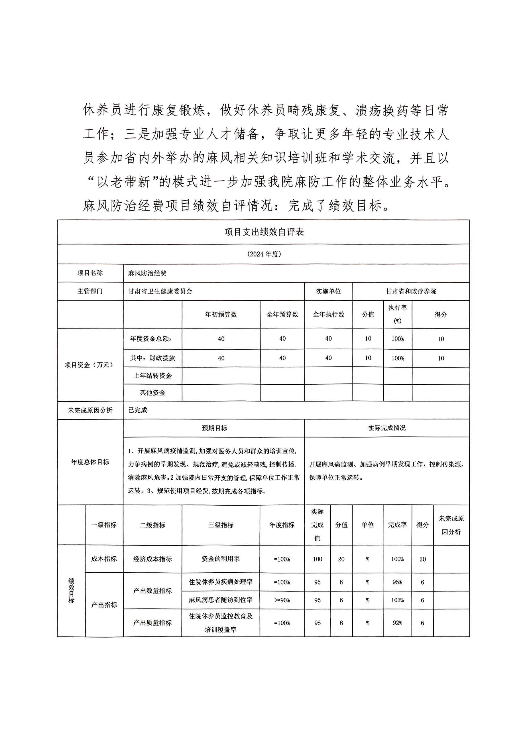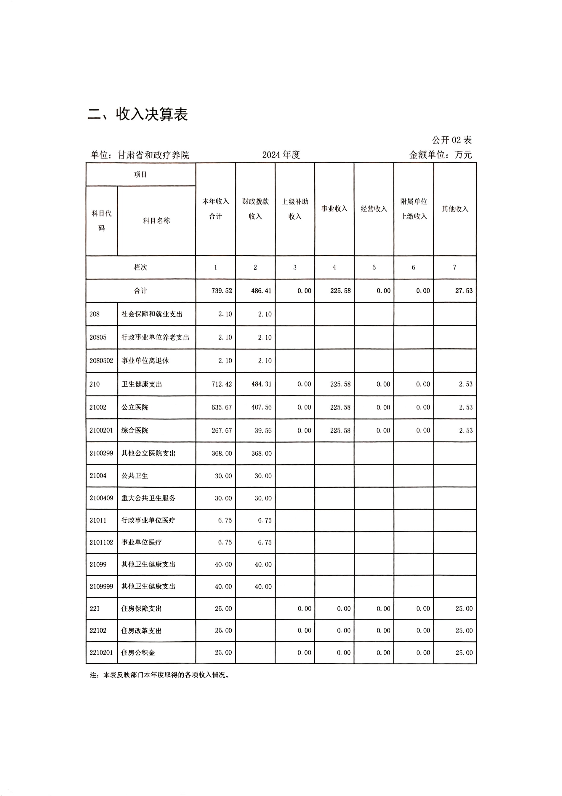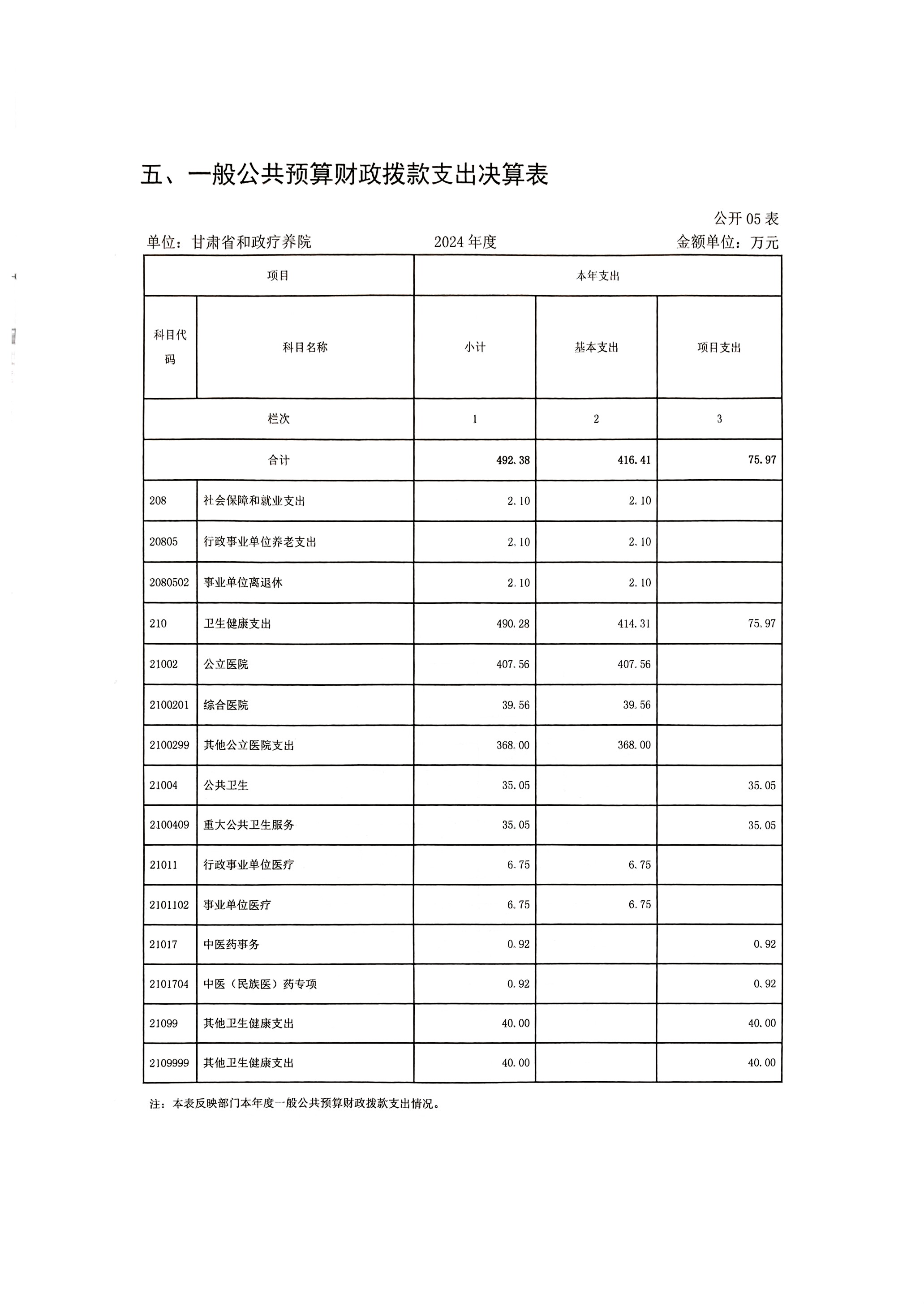 2024年度甘肃省和政疗养院部门决算公开
